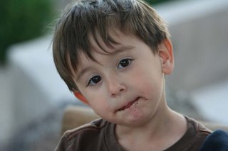 Ben still has some trouble finding his mouth when eating. Oh, and he seems to think his shirt works just as well as a napkin as well. Needless to say, his mom is ecstatic.